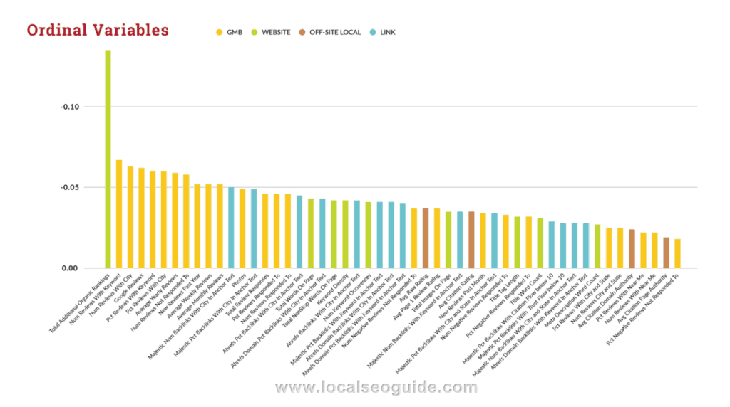 این تحقیق، بیش از ۲۰۰ فاکتور از ۱۰۰ هزار کسب و کار محلی را مورد آزمایش قرار داد تا بتواند مشابهتهایی در شرکتهایی که رتبهی بالایی در گوگل به دست آوردهاند بیابد. علیرغم این که کسب و کارهای محلی پروفایلهای لینک کم ارزشی داشتند اما فاکتورهای رتبهبندی ارگانیک و بنیادی همچنان قویا با فاکتورهای رتبهبندی محلی مرتبط بودهاند.