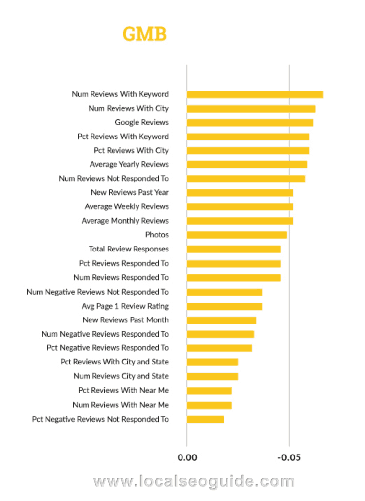 به نظر میرسد نقد و بررسیها (ریویو)، بزرگترین فاکتور سئوی بومی به شمار میرود و به شرکتها کمک میکند رتبه خوبی در سئو به دست بیاورند حتی اگر کیفیت لینکهایشان پایین باشد.