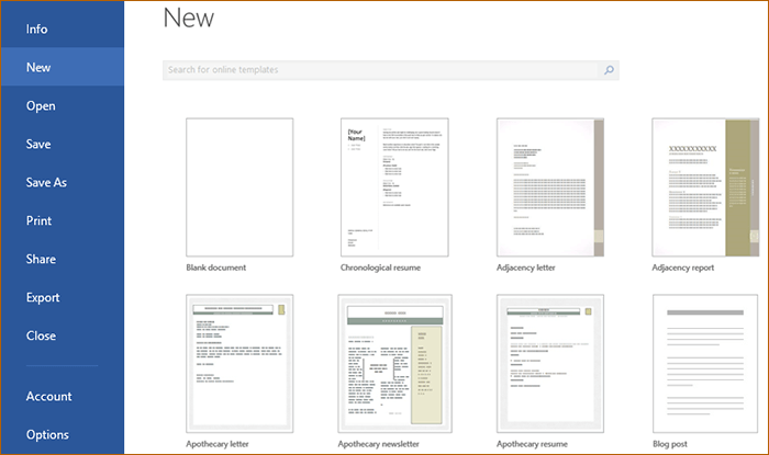 در برنامه ورد در قسمت NEW و در بخش انتخاب تمپلت( به آدرس File → New → Blog Post ) گزینه Blog Post را انتخاب کنید: