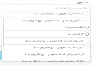 مشکل دیگری که توسط همین کاربر و مشتریان دیگر ذکر میشود پیچیده و سخت بودن امکان درخواست مرجوع کالاست. ما برای این مورد کالایی را در گروه موبایل (به عنوان هدیه برای شهری در استان آذربایجان شرقی ارسال کردیم) سفارش دادیم و پس از دریافت محصول (طی سه روز و طبق زمان بندی اعلام شده ) بخش مرجوع کالا را تست کردیم و تا یک روز گزینه های مختلفی در فیلد علت مرجوعی (از ایرادات ظاهری گرفته تا مشکلات مربوط به گارانتی) فعال بوده و تا ۷ روز هم امکان استرداد به خاطر مشکل رجیستری و یا ایراد فنی وجود داشت و به هیچ وجه مراحل پیچیدهای برای ثبت درخواست مرجوعی مشاهده نکردیم.